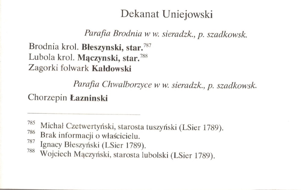- Józef Szubzda - Brodnia, Brzeg i Lubola w 1789 r. - w kwartalniku: Na sieradzkich szlakach 3/107/2012/XXVII