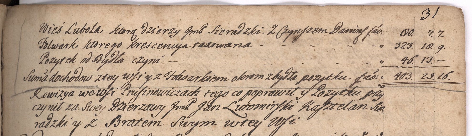 Wies Lubola, której wsi iest dawną Dzierżawczyną Jeym.P. Jadwiga z Tarnowa, niegdy Im .Pana Aleksandra Madalinskiego Podkomorzego Wieluńskiego pozostała małżonka, ...
