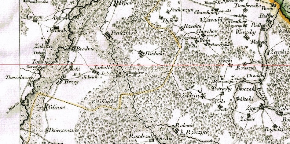 - Jadąc od Luboli, około pół kilometra przed przed wjazdem do Brodni - Dobra Luboli sąsiadowały z Dobrami Brodni.