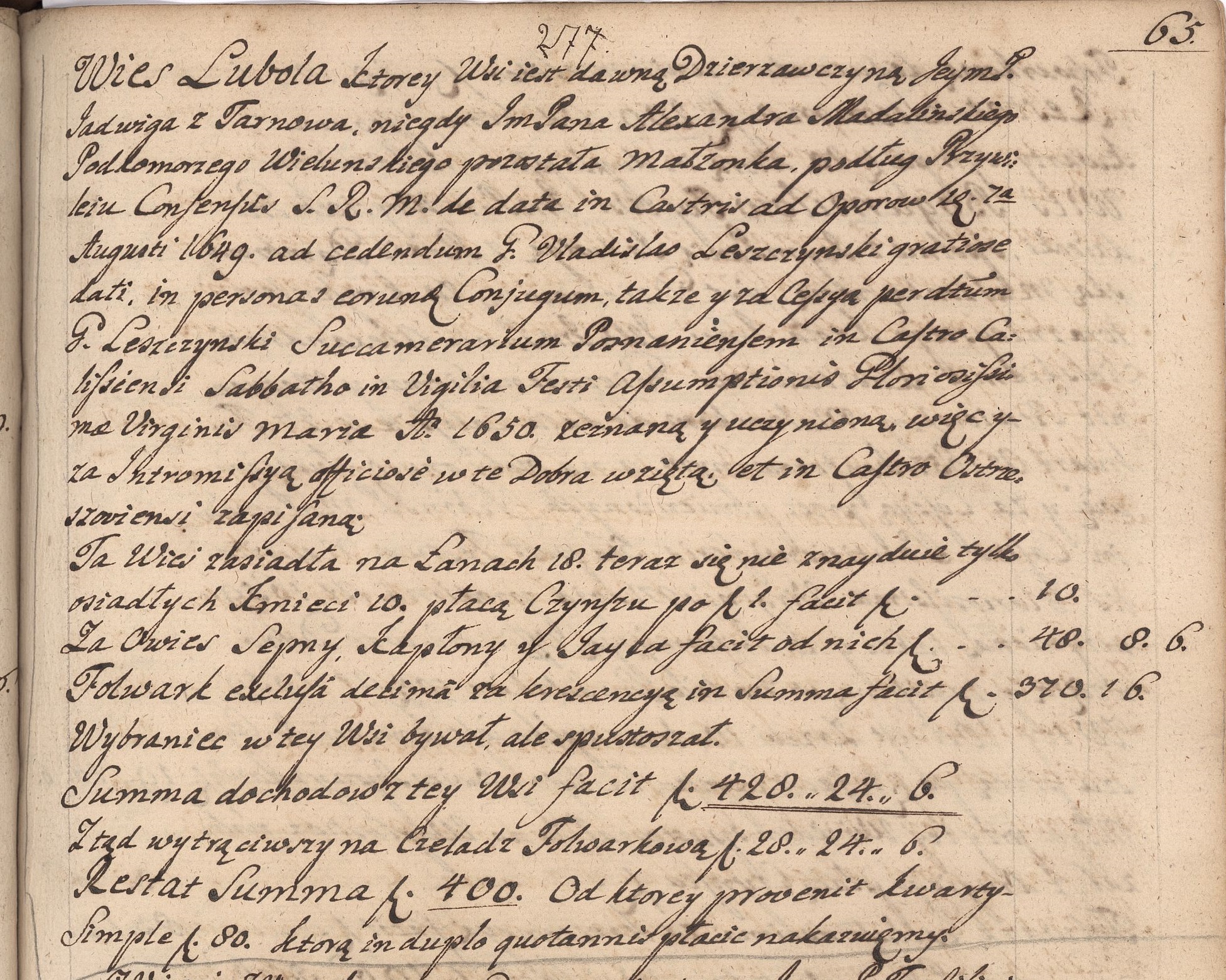 Wies Lubola, której wsi iest dawną Dzierżawczyną Jeym.P. Jadwiga z Tarnowa, niegdy Im .Pana Aleksandra Madalinskiego Podkomorzego Wieluńskiego pozostała małżonka, ...