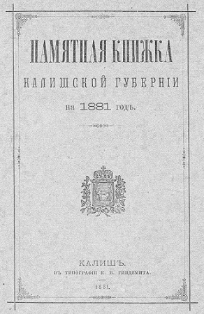 (Księga pamiątkowa kaliskiej Guberni z 1881 roku.)